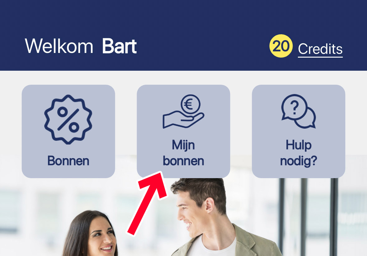 Bezoek een zaak waarvan je een bon hebt gekozen. Open de app en tik op "Mijn bonnen".