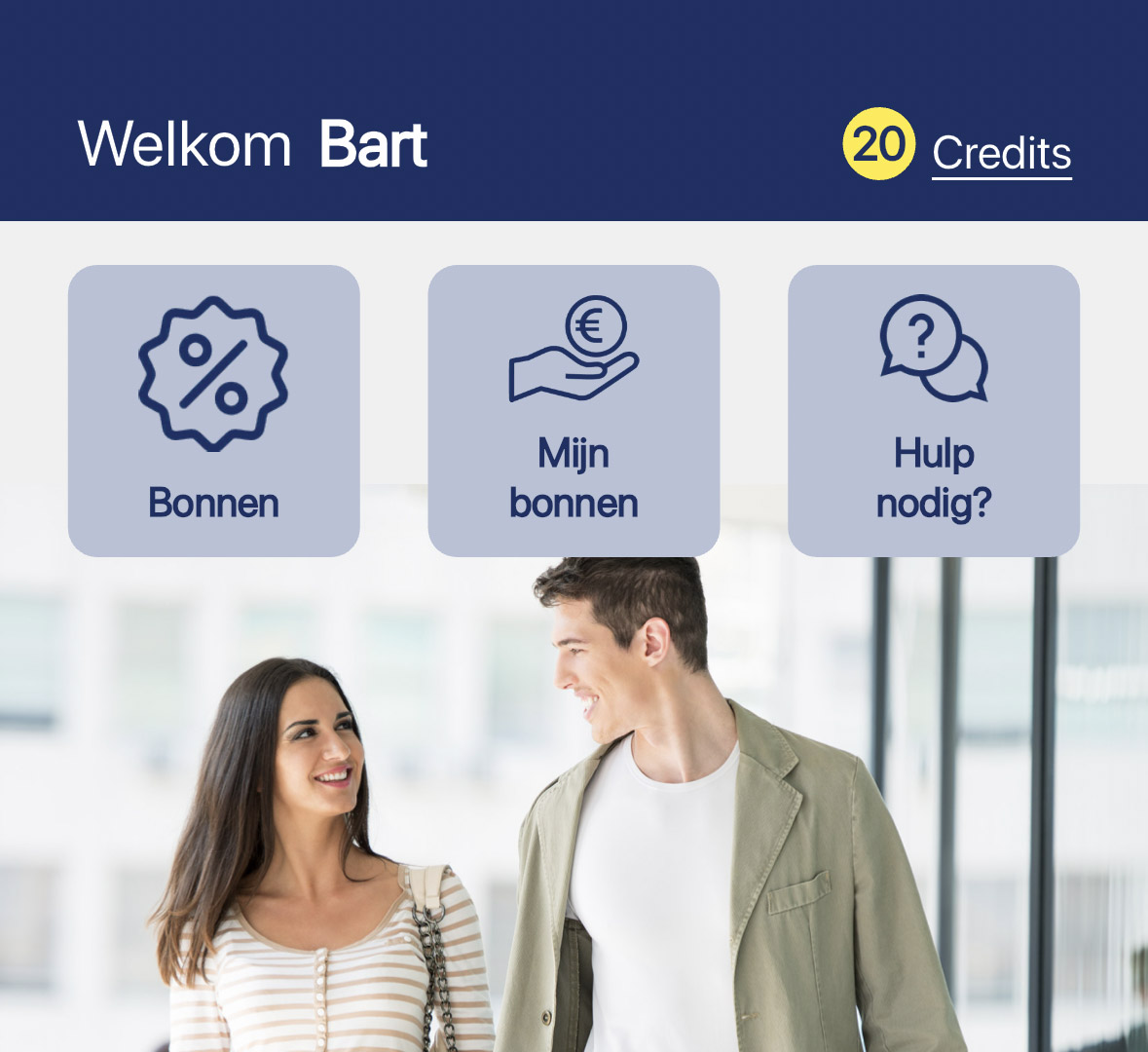 Voorlopig hebben enkel de winnaars van de eindejaarsactie credits gekregen waarmee ze bonnen kunnen kiezen om te gebruiken in de winkels. Binnen een paar maanden kunnen gebruikers van de app ook credits verdienen. Meer hierover in onze nieuwsbrieven als deze functie gelanceerd wordt.