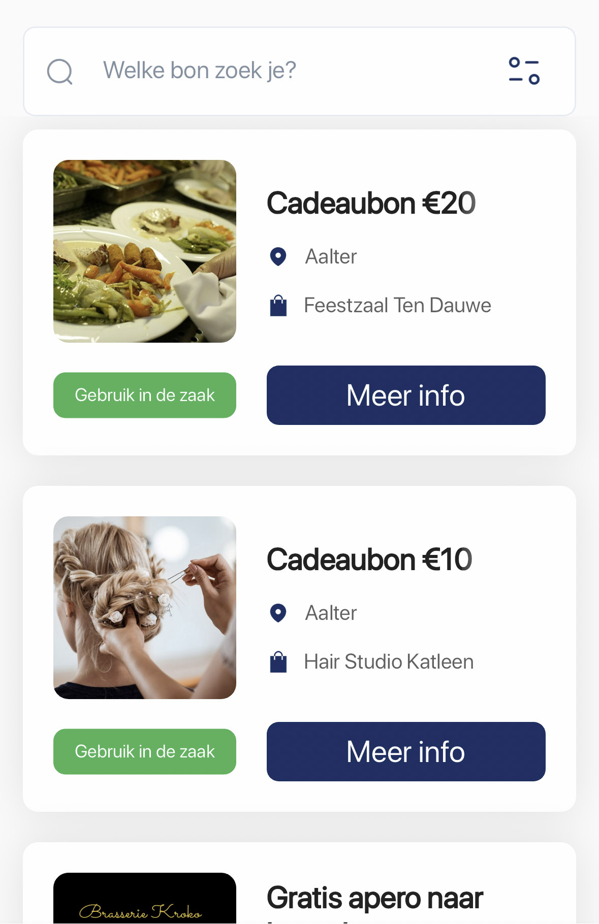 Je krijgt een overzicht te zien van alle bonnen die beschikbaar zijn. Standaard krijg je alle bonnen te zien uit je eigen streek.